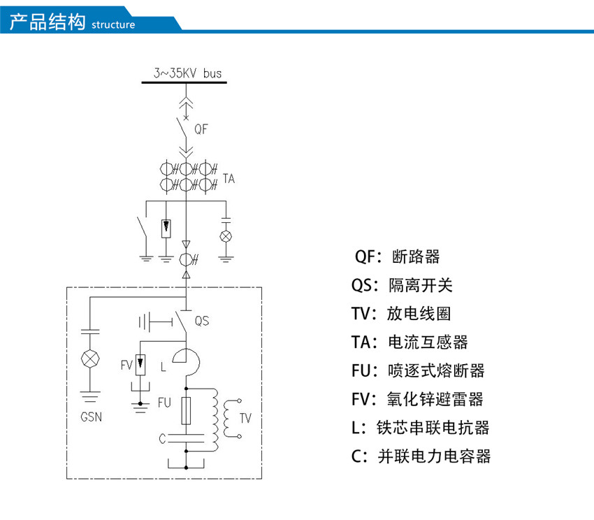 MSCHC型高壓無功集中補償裝置,是將固定容量的電容器組 并聯(lián)連接在配電變壓器3~35kV母線上,提供固定容量的容性無功功率,補償感性無功功率,改善功率因數(shù),穩(wěn)定系統(tǒng)電壓,從而降低線路損耗,提高變壓器傳輸容量,提高整體的電力傳輸效率。裝置由并聯(lián)電容器、串聯(lián)電抗器、放電線圈、避雷器、控制和保護裝置等組成。主要應用于3~35kV負荷波動不大的交流電力系統(tǒng)中