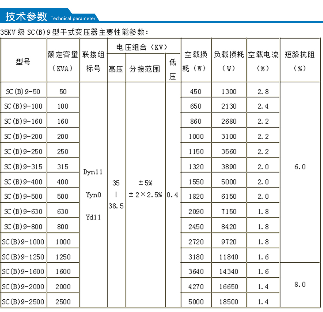 干式變壓器冷卻方式分為自然空氣冷卻(AN)和強(qiáng)迫空氣冷卻(AF)。自然空冷時(shí),變壓器可在額定容量下長(zhǎng)期連續(xù)運(yùn)行。強(qiáng)迫風(fēng)冷時(shí),變壓器輸出容量可提高50%。適用于斷續(xù)過(guò)負(fù)荷運(yùn)行,或應(yīng)急事故過(guò)負(fù)荷運(yùn)行;由于過(guò)負(fù)荷時(shí)負(fù)載損耗和阻抗電壓增幅較大,處于非經(jīng)濟(jì)運(yùn)行狀態(tài),故不應(yīng)使其處于長(zhǎng)時(shí)間連續(xù)過(guò)負(fù)荷運(yùn)行。