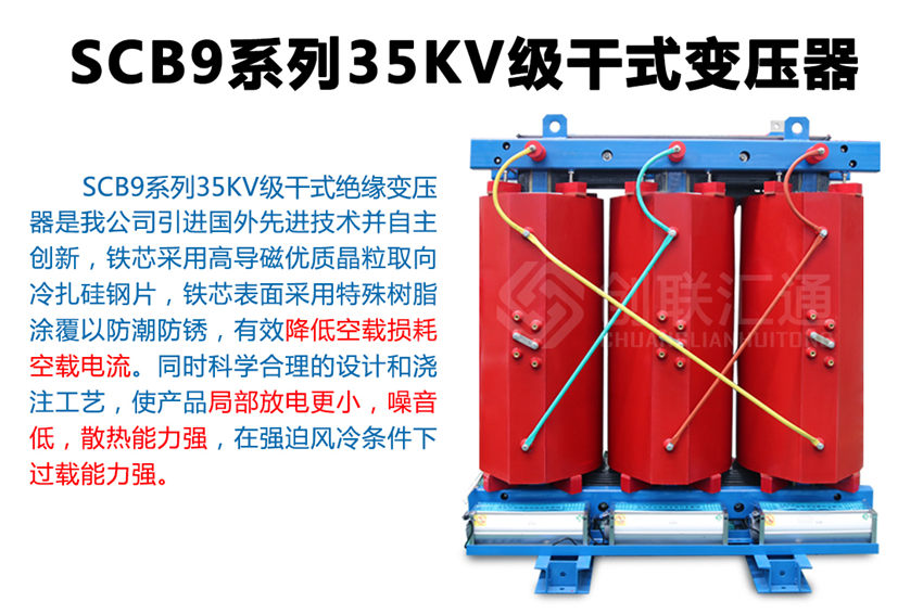 SC(B)9系列35KV環(huán)氧樹脂干式變壓器新一代節(jié)能產(chǎn)品,該系列配電變壓器產(chǎn)品使用在變壓器電壓直接從35KV電網(wǎng)轉(zhuǎn)變?yōu)?00V配電的特殊場合,可減少10KV輸變電環(huán)節(jié),使運(yùn)行維護(hù)費(fèi)用明顯降低。35KV級無勵磁調(diào)壓配電變壓器產(chǎn)品通過了家級鑒定,確立為高新技術(shù)產(chǎn)品。 產(chǎn)品具有損耗低、阻燃性好、承受短路能力強(qiáng)、體積小、噪音低、耐雷電沖擊性能好,溫度分布均勻等優(yōu)點(diǎn),而且由于環(huán)氧樹脂干式變壓器不使用變壓器油,不會產(chǎn)生油污染,無爆炸危險(xiǎn)。產(chǎn)品可作為配電變壓器廣泛適用于電力系統(tǒng)城網(wǎng)改造,也可用于高層建筑、機(jī)場、車站、港口、地鐵待對消防、環(huán)保有嚴(yán)格、特殊要求的多種場合。