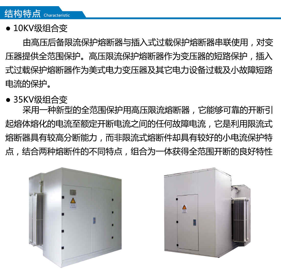 本產(chǎn)品是將變壓器,負(fù)荷開關(guān),高壓熔斷器安裝在變壓器的箱體內(nèi),利用變壓器的絕緣液體作為整個產(chǎn)品的絕緣和散熱介質(zhì),采用全密封結(jié)構(gòu),外殼采用分體,噴丸、酸洗、磷化、分別噴涂底漆、中間漆、面漆達(dá)到表面的防腐性、耐厚性、防紫外線性均超過普通噴涂的強(qiáng)度,具有體積小,重量輕、安裝方便等優(yōu)點(diǎn)。