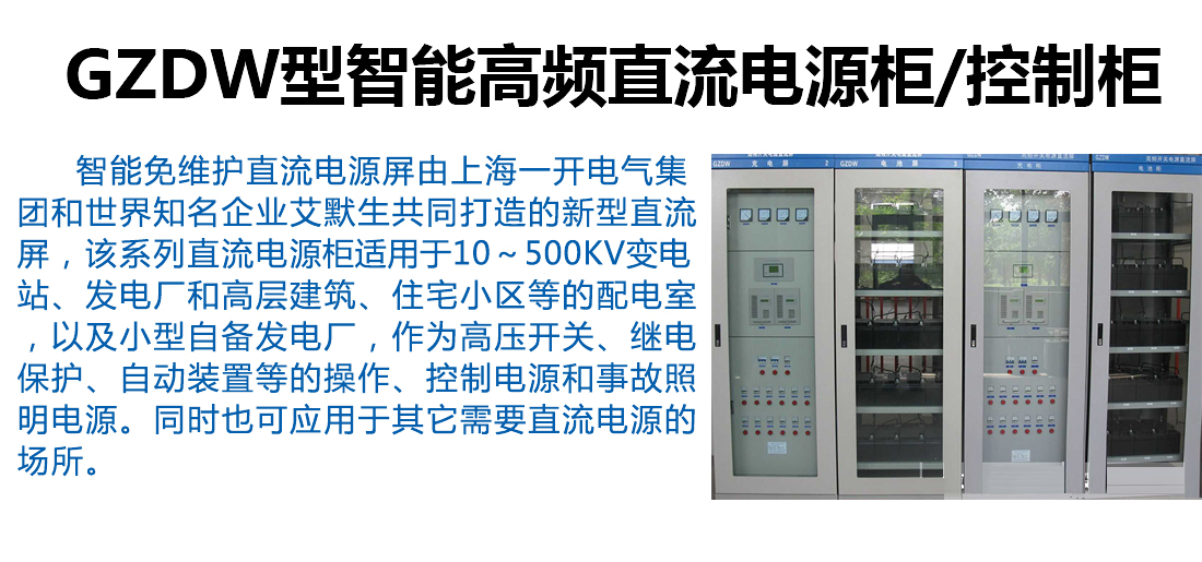 本智能免維護(hù)直流電源屏由上海一開(kāi)電氣集團(tuán)和世界知名企業(yè)艾默生共同打造的新型直流屏,該系列直流電源柜適用于10~500kV變電站、發(fā)電廠和高層建筑、住宅小區(qū)等的配電室,以及小型自備發(fā)電廠,作為高壓開(kāi)關(guān)、繼電保護(hù)、自動(dòng)裝置等的操作、控制電源和事故照明電源。同時(shí)也可應(yīng)用于其它需要直流電源的場(chǎng)所。
